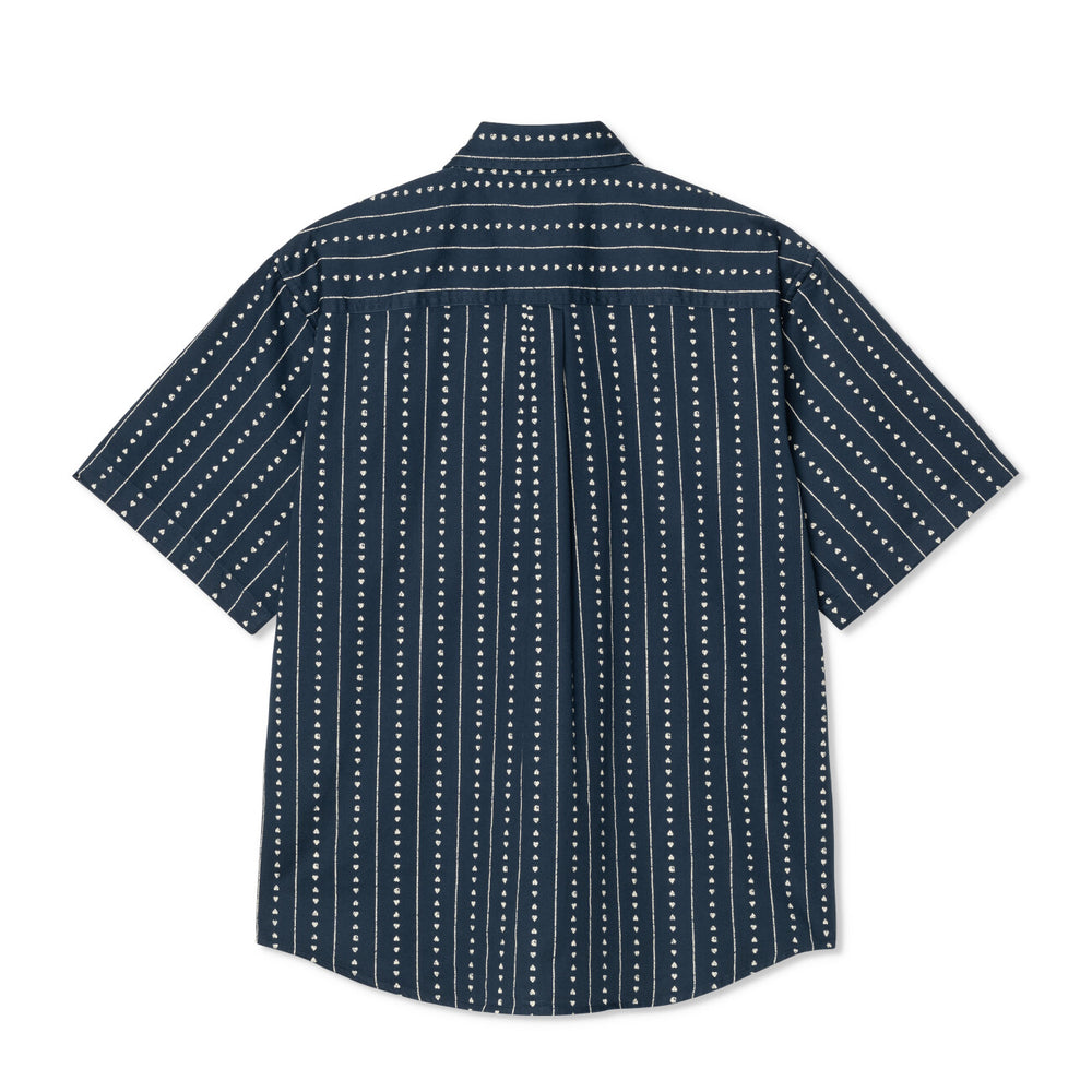 Das Carhartt WIP S/S Drewe Shirt in Heart C Pinstripe, Ink-Natural bringt klassische Workwear-Ästhetik in die moderne Streetwear. Das luftige Kurzarmhemd mit feinen Nadelstreifen kombiniert eine lockere Passform mit hochwertigen Materialien für maximalen Tragekomfort. Perfekt für lässige Sommer-Looks oder als Teil eines modernen Layering-Styles. I034537.2RU.XX