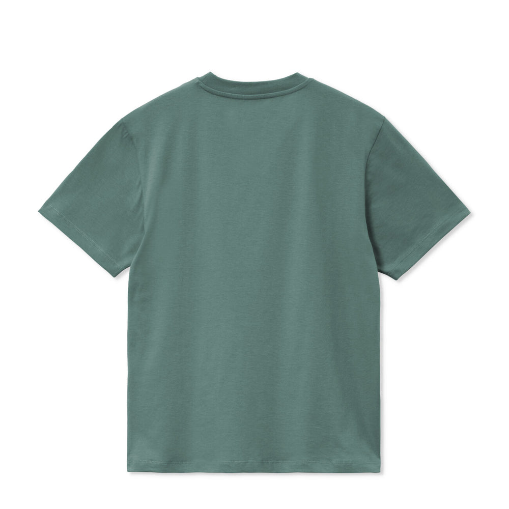 Das Carhartt WIP Women's S/S Chase T-Shirt in der Farbe Silver Pine mit goldenen Akzenten ist ein klassisches Kurzarmshirt für Damen, das durch seine schlichte Eleganz und hochwertige Verarbeitung besticht. Gefertigt aus 100% Baumwolle, bietet es ein angenehmes Tragegefühl und Langlebigkeit. Der Regular Fit sorgt für eine bequeme Passform, während das dezente Carhartt 'C' Logo in Gold auf der linken Brust einen subtilen Markenakzent setzt. Dieses T-Shirt ist vielseitig kombinierbar und eignet sich perfekt für den täglichen Gebrauch oder entspannte Freizeitaktivitäten. I033045.2N0.XX